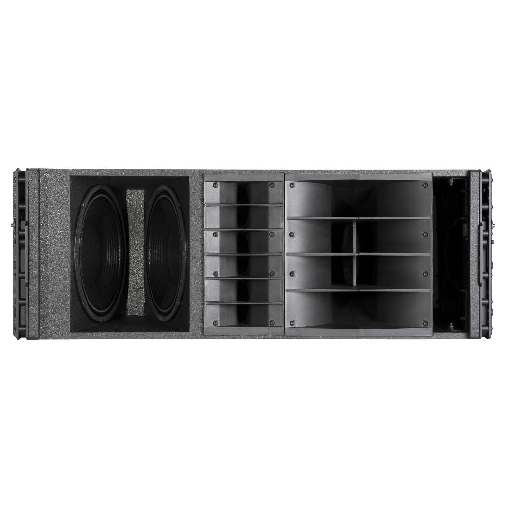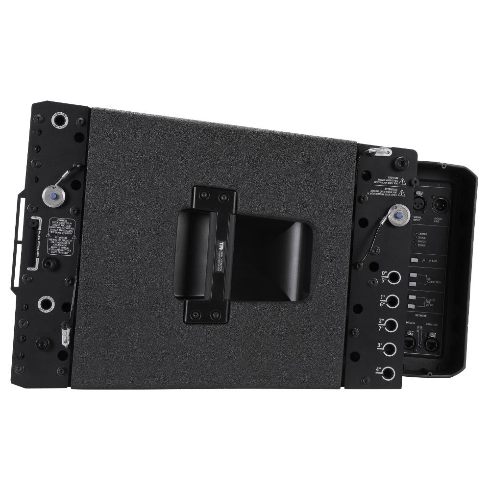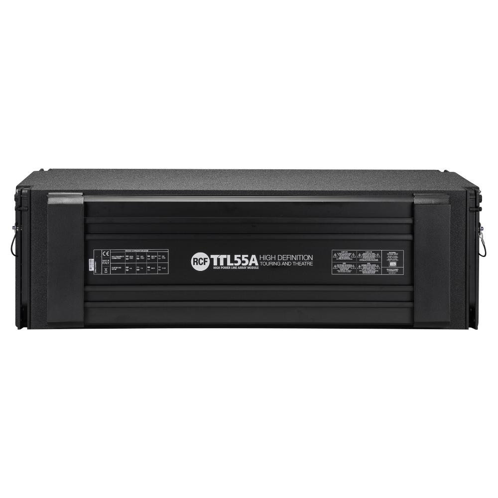The TTL55-A is a high power, three way, active line array module engineered to deliver an incredible output for use in indoor or outdoor large spaces. The system is designed to be easily scalable from few modules for medium and small theatres to full size arrays for very large outdoor stadia and public spaces. The three new designs for the six neodymium transducers that power the system represent the result of many years dedicated in pioneering new solutions using the best materials available on the market. The integration of the 3500 W four channel digital amplification and the advanced digital processing set a new standard for distortion, noise and thermal efficiency.