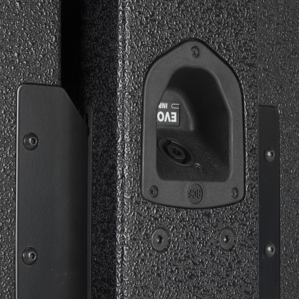 EVOX array design features constant horizontal directivity coverage of 120°, offering a perfect listening experience to the audience. The vertical array design is progressively shaped to guarantee a correct listening from the first row and to avoid a high frequency beaming typical of straight array